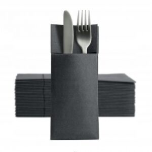 Serwetka flizelinowa w kolorze czarnym o wymiarach 40cmx40cm inaczej mówić kieszonka na sztućce – elegancki dodatek, stanowiące świetne uzupełnienie nakrycia stołu, jednocześnie jest niezwykle praktycznym sposobem podania sztućców nie tylko w restaucaji, ale także w barze, kawiarni oraz domu.