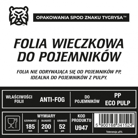 Folia nieodrywająca się od pojemników, w foli zastosowany jest antifog, który niepowoduje parowania.