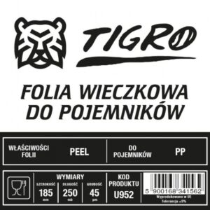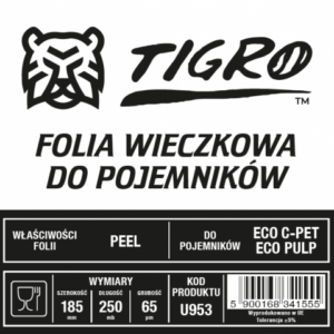 Folia wieczkowa, barierowa, transparentna – wykonana z folii PET/PE o szerokości 185mm i długości 200 metrów bieżących. Służy do zgrzewania i zamykania pojemników PP.
