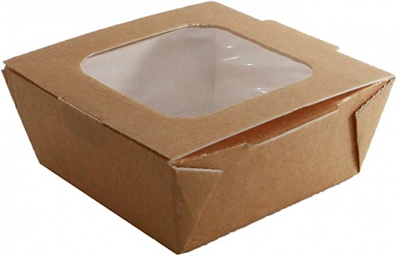Pojemnik papierowy kraft z okienkiem powlekany folią w środku, dzięki czemu tłuszcz z dań nie przecieka/ Wymiary opakowania 125/125/60. Pakowany w opakowaniu po 140 sztuk.