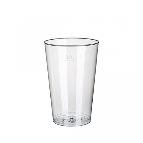 Kubek plastikowy transparentny o pojemności 300ml i wysokości 11.9cm. Kubek przeznaczony tylko do zimnych napojów. Opakowanie 50szt.