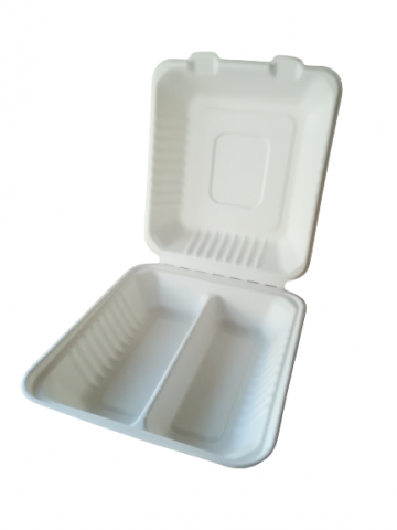 Menubox dwudzielny wykonany z pulpy celulozowej o wymiarach 22 cm na 20 cm na 7,5 cm wysokości. Bardzo porządny produkt, sztywny nadaję się do dań na wynos. Cechuje go elegancki wygląd. Produkt jest w 100% biodegradowalny i przyjazny dla środowiska.