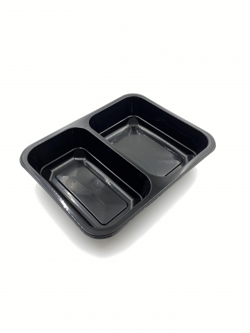 Pojemnik do zgrzewu dwudzielny w kolorze czarnym wykonany z tworzywa PP idealnie nadaje się do gorących dań. Pojemnik można podgrzewać w mikrofalówce. Wymiary: 22,7cmx17,8cmx4,5cm. Pakowany po 320szt w kartonie.