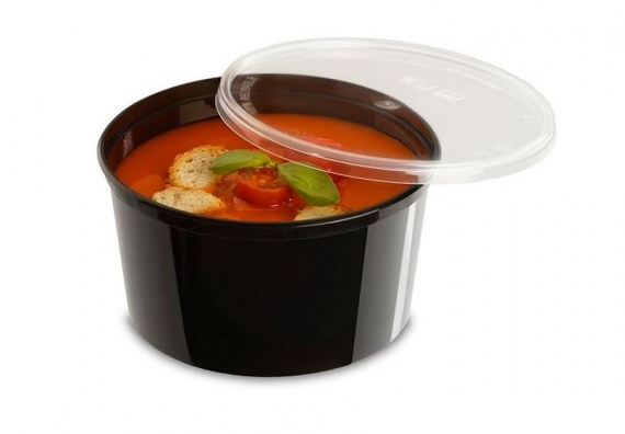 Pojemnik do zupy czarny PRESTIPACK o pojemności 500 ml wykonany z tworzywa PP. Pojemniki jest dobrą alternatywą dla pojemników styropianowych, można w nim podawać nie tylko zupy, ale także makarony, ryż, sałatki czy galarty. Możliwość wielokrotnego użytku oraz podgrzewania w mikrofali.