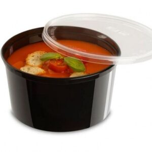 Pojemnik do zupy wykonany z tworzywa PP. Pojemniki jest dobrą alternatywą dla pojemników styropianowych, można w nim podawać nie tylko zupy, ale także makarony, ryż, sałatki czy galarty. Przyjazne dla użytkownika dzięki wygodnym uchwytom. Funkcjonalne kształty i rozmiary. Dopasowane wieczka gwarantują bezpieczeństwo żywności. Sztywność i stabilność gwarantują bezpieczeństwo podczasużytkowania. Pojemnik do zupy czarny PP średnica 143mm pojemność 680/570ml kod:G600740