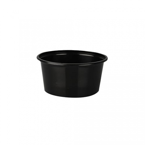 Pojemnik o pojemności 80 mil koloru czarnego. Idealnie nadaje się do sosów oraz dipów. Dostępne jest wieczko do pojemnika. Pakowane w opakowaniu po 100 sztuk.