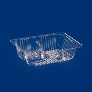Pojemnik plastikowy żebrowany o wymiarach 10.8cmx8cmx4.5cm i pojemności 350ml wykonany z tworzywa PP idealnie nadaje się do pakowania gorących dań, można go podgrzewać w mikrofalówce. Pakowany po 100 sztuk w ladze i 1000 sztuk w kartonie.