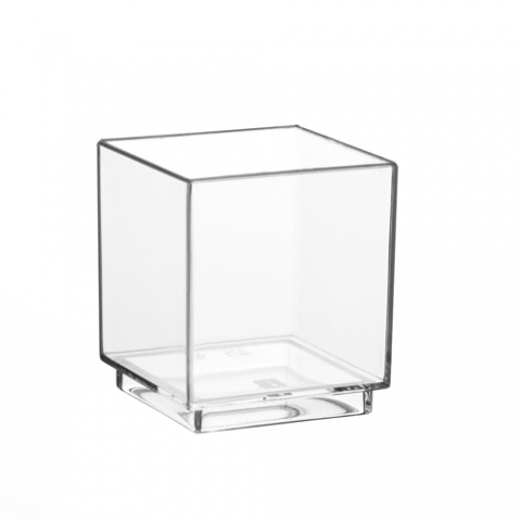 Plastikowy pucharek w kolorze transparentnym o wymiarach 4.7cmx4.2cmx4.2cm. Stanowi wspaniały pomysł i sposób na zorganizowanie oryginalnego przyjęcia, cateringu czy degustacji. Jest również doskonałą ozdobą stołu, a podane w nich przekąski oraz desery są efektowne dla oka. Pojemność – 55ml