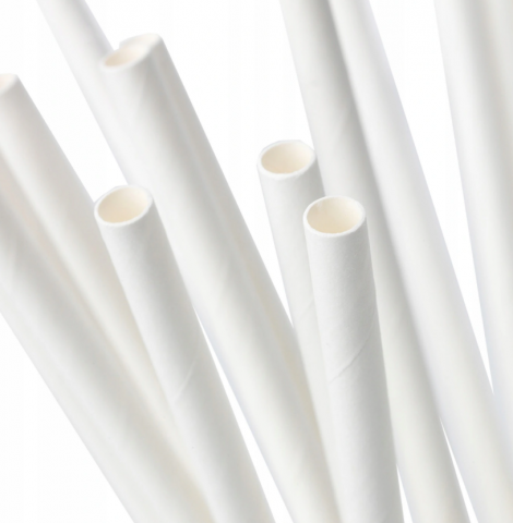 Papierowa słomka o średnicy 6 mm i długości 20 cm pakowana po 250 sztuk, śnieżno biała. Słomka jest bardzo wysokiej jakości i nie rozwadnia się.