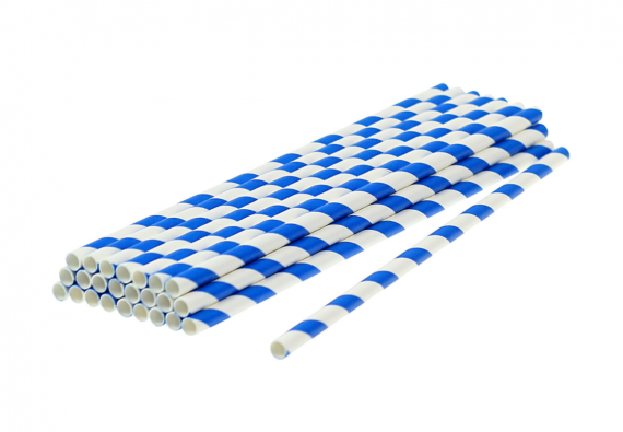Papierowa słomka o średnicy 8 mm i długości 21 cm pakowana po 250 sztuk, kolor biało niebieski. Słomka jest bardzo wysokiej jakości i nie rozwadnia się.