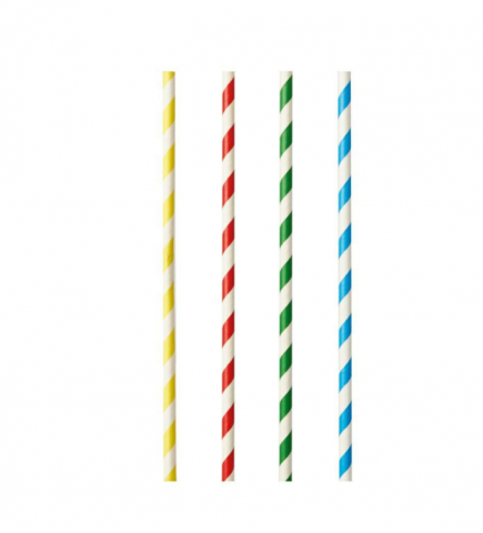 Papierowa słomka o średnicy 8 mm i długości 21 cm pakowana po 250 sztuk, mix kolorów. Słomka jest bardzo wysokiej jakości i nie rozwadnia się.