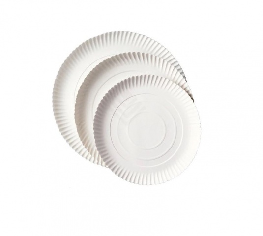 Talerz papierowy biały o średnicy 42cm.