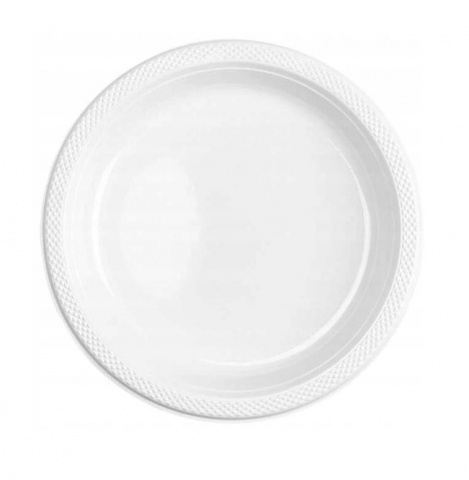 Talerz plastikowy w kolorze białym o średnicy 22cm.