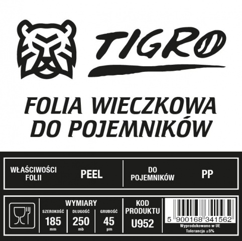 Folia wieczkowa, barierowa, transparentna – wykonana z folii PET/PE o szerokości 185mm i długości 250 metrów bieżących. Służy do zgrzewania i zamykania pojemników PP.