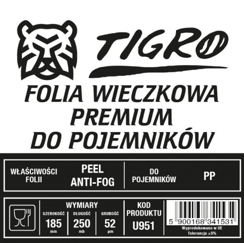 Tigro folia do zgrzewu premium EASY PEEL ANTYFOG 185mm/250mb 52um U951