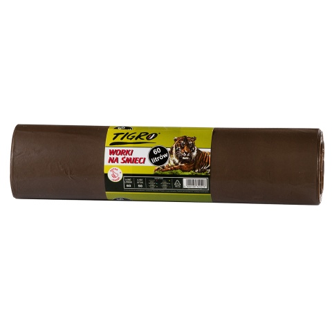 Tigro worki na śmieci 60L 60×80 brazowe 50 sztuk