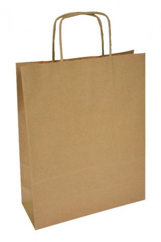 Najpopularniejsze torby papierowe ze skręcanym uchwytem o wymiarach 24cmx10cmx32cm w kolorze szarym. Idealnie nadają się jako torby cateringowe, torby zakupowe czy torby spożywcze. Na torbach można nadrukować dowolną grafikę np. logo firmy, sklepu. Opakowanie 250szt.
