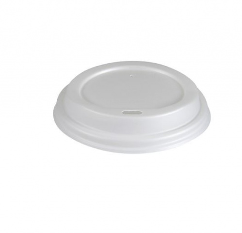 Białe wieczko biodegradowalne z tworzywa PLA do kubków papierowych o średnicy 90 mm