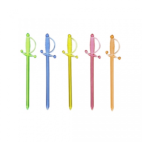 Wykałaczki bankietowe w kształcie mieczyków o długości 7cm, idealnie na imprezy i przyjęcia dla dzieci.