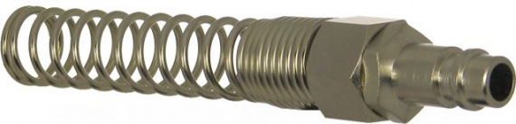 Złącze GAV + sprężyna 8x5mm Złącze do sprężonego powietrza GAV + sprężyna 8x5mm typ 26 DN 7.2 Złącze GAV skręcane na wężu o wymiarach 8x5mm. Wzmocnione sprężyną. Typ 26.