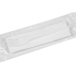 Komplet widelec nóż serwetka biały